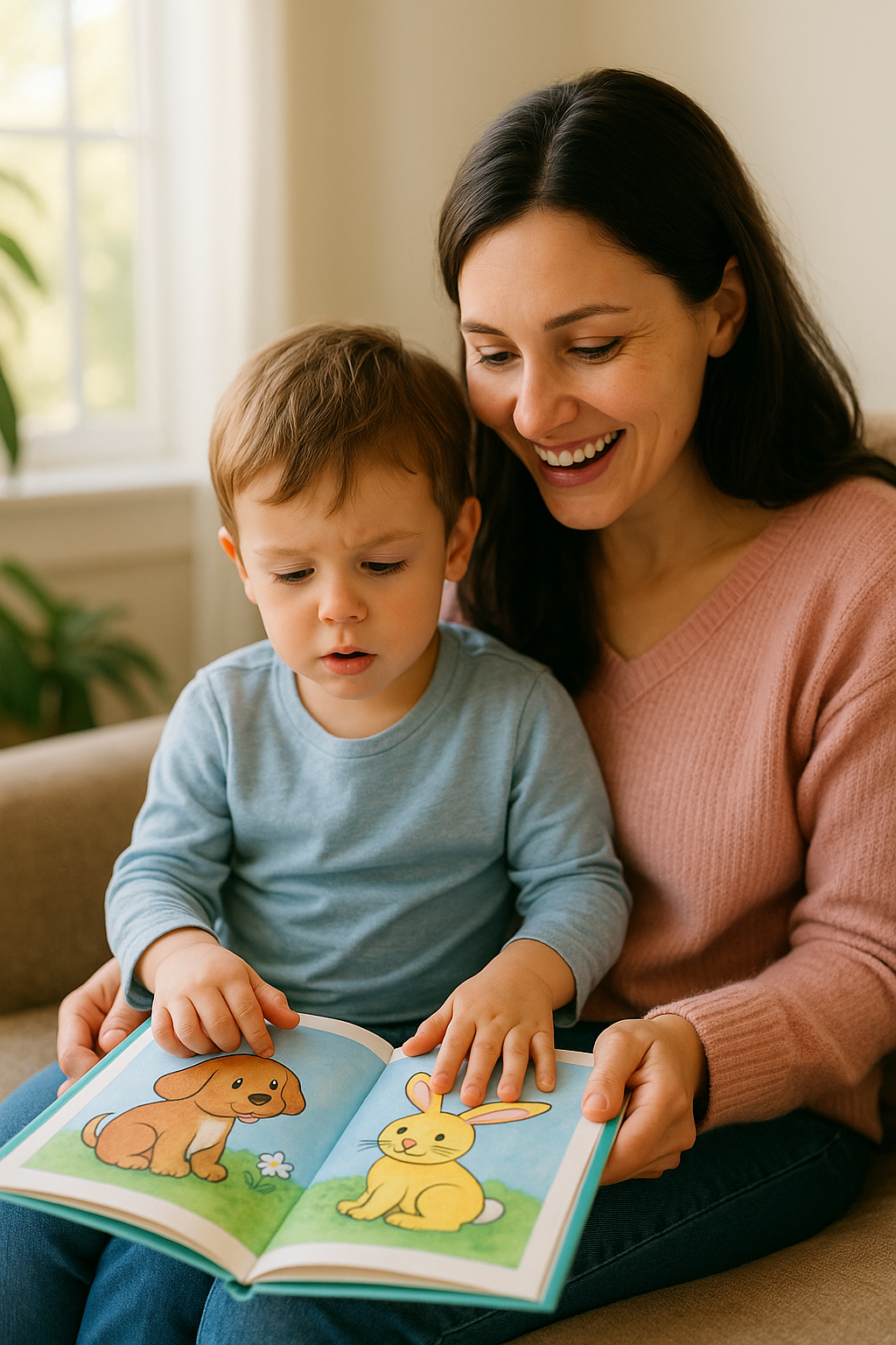 하지만 처음부터 완벽한 문장을 요구하지 말고 소리 흉내 내기 → 단어 따라말하기 → 짧은 문장 따라하기로 시작하면 자연스럽게 말문이 트이게 됩니다.